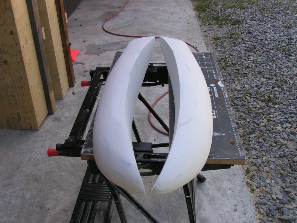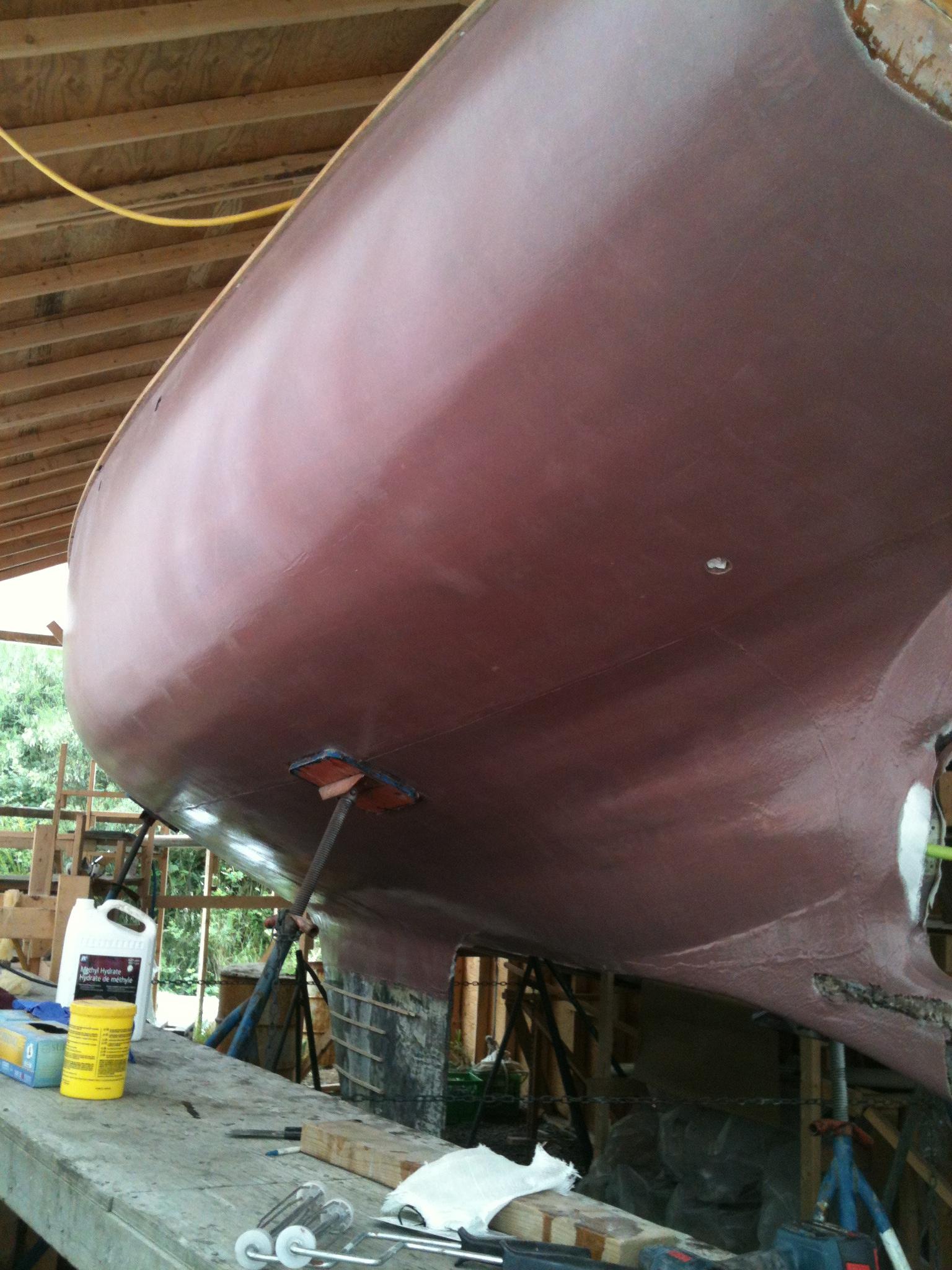 All glassed and faired with epoxy mixed with West System 407 low density filler, sanded and ready for paint