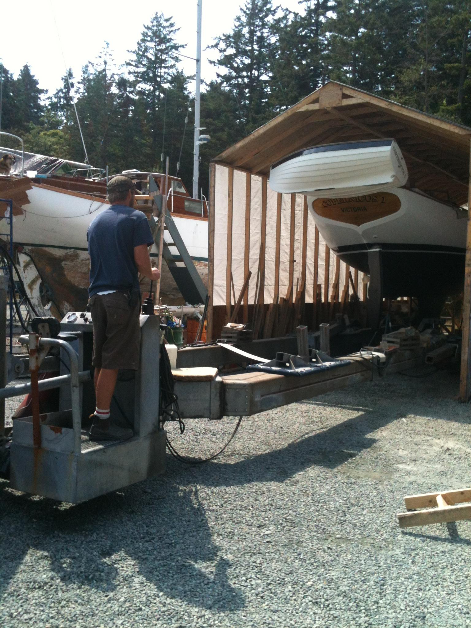Patric and Derek from Canoe Cove Marina expertly pull the boat out of the Taj Mahal