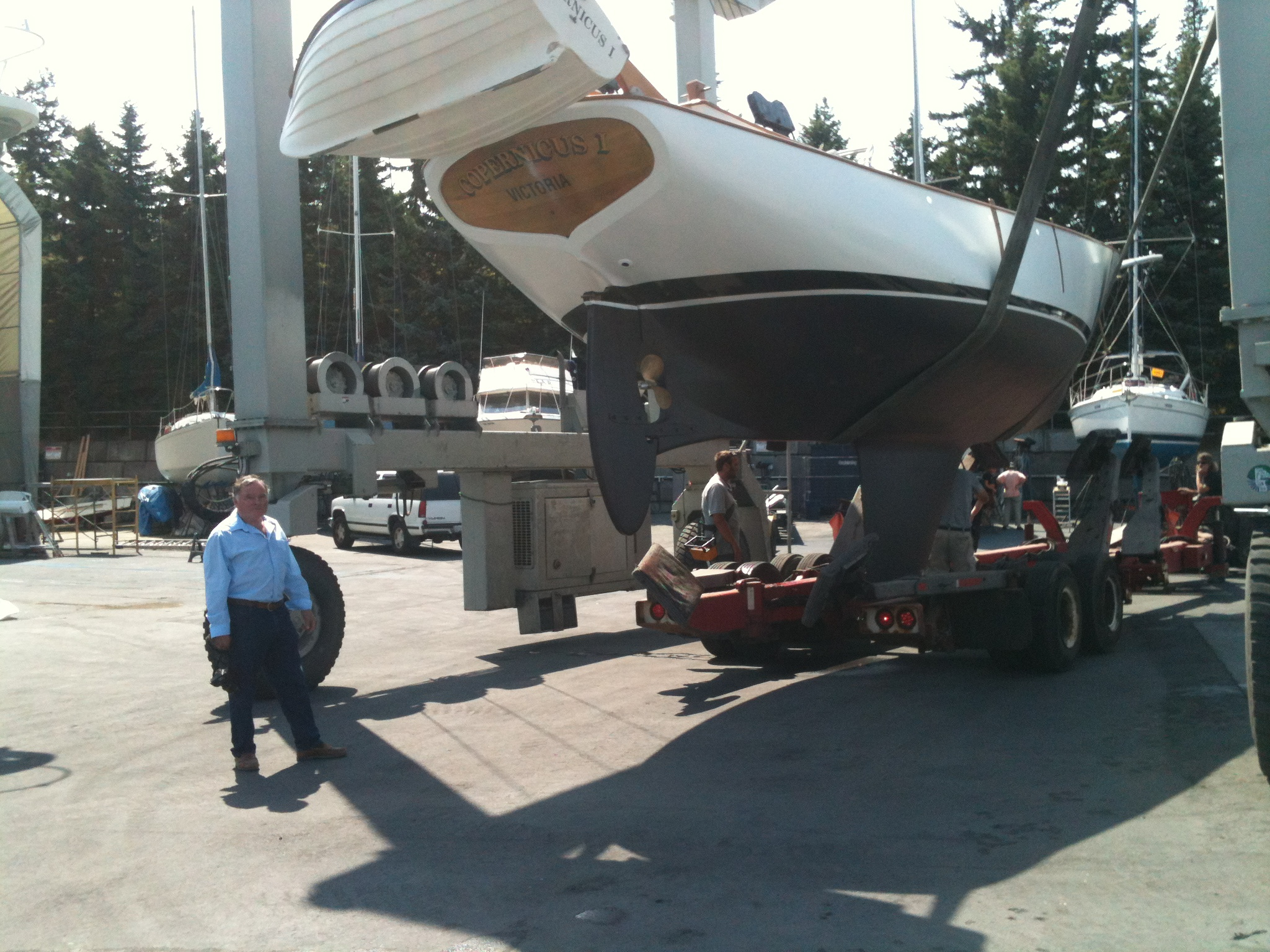 Copernicus had some problems that, if not addressed, would send the boat into fast decline. The most serious issue was the keel-hull transition where the floor timbers were too short to give the structure enough support. Byron had a grounding and opened a crack where the hull meets the floor timbers on the starboard side and I did the same on the port side. That made the the ocean trickle inside on either tack, and with no bilge to speak of, even a small amount of water would run up the sides and wet everything in the lockers when the boat heels. That brings us to the other issue: excessive heeling. Byron recognized that problem and added some lead to the bottom of the keel increasing the drought by about 20 inches. That was not enough to ameliorate the problem , so in 2011 I have decided to save my beautiful boat, make her stronger and safer. With the help from Eric Jespersen and his crew of very skilled shipwrights and the guys from Blackline Marine Services from Canoe Cove Marina in Sidney, British Columbia I embarked on a 23 month project to accomplish that.