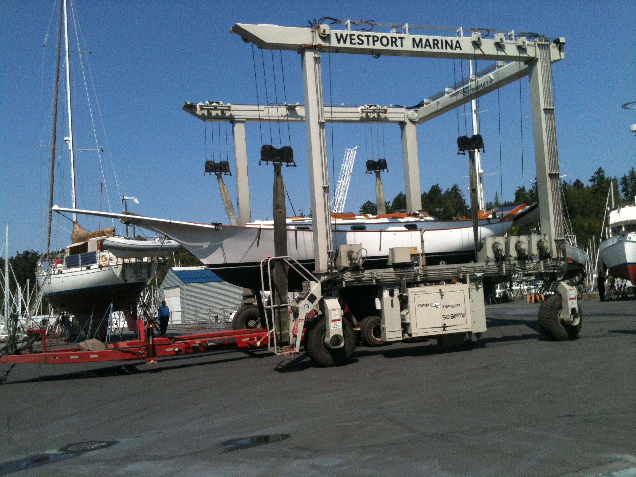 Patric and Derek from Canoe Cove Marina expertly pull the boat out of the Taj Mahal