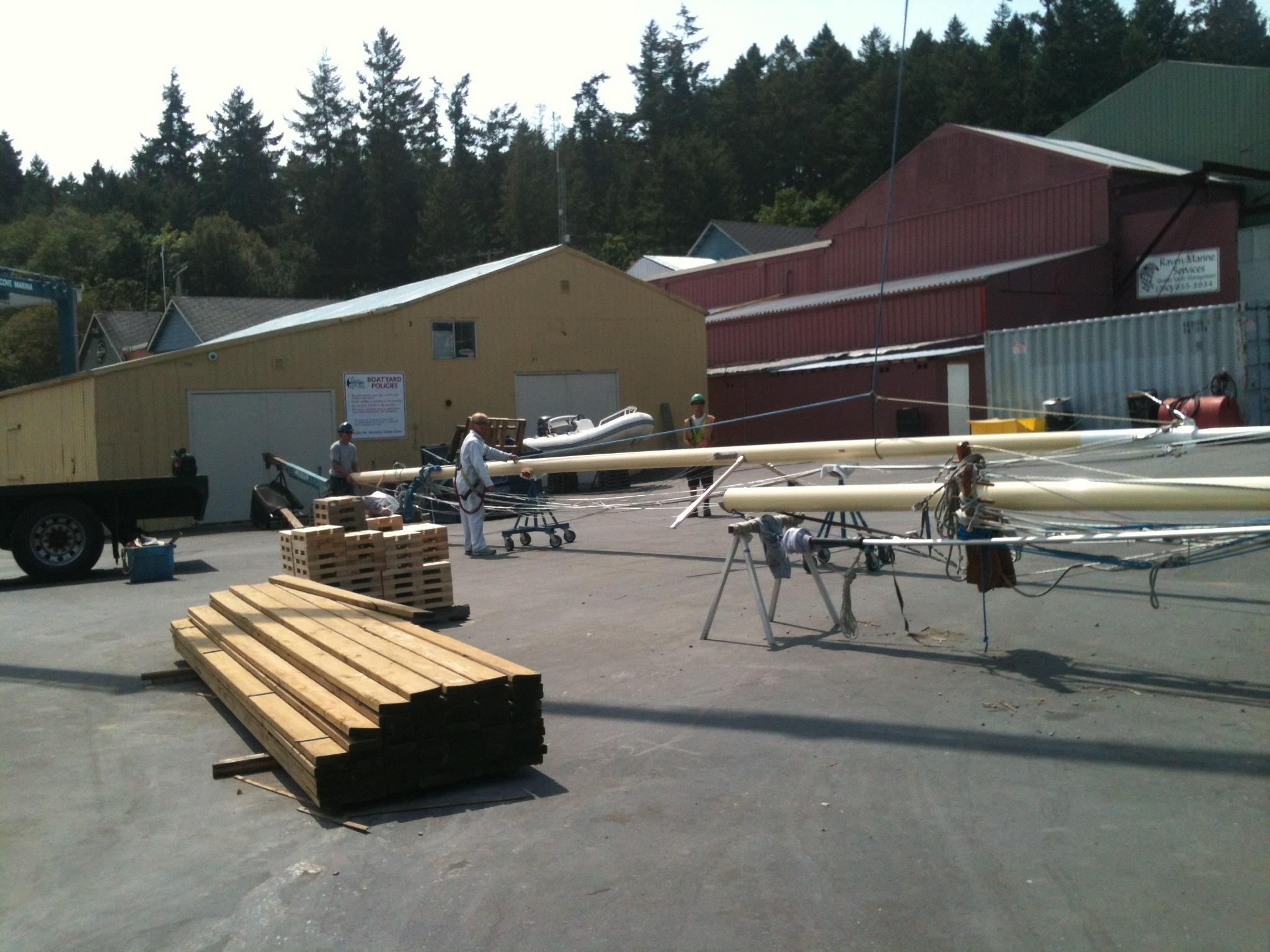 Copernicus had some problems that, if not addressed, would send the boat into fast decline. The most serious issue was the keel-hull transition where the floor timbers were too short to give the structure enough support. Byron had a grounding and opened a crack where the hull meets the floor timbers on the starboard side and I did the same on the port side. That made the the ocean trickle inside on either tack, and with no bilge to speak of, even a small amount of water would run up the sides and wet everything in the lockers when the boat heels. That brings us to the other issue: excessive heeling. Byron recognized that problem and added some lead to the bottom of the keel increasing the drought by about 20 inches. That was not enough to ameliorate the problem , so in 2011 I have decided to save my beautiful boat, make her stronger and safer. With the help from Eric Jespersen and his crew of very skilled shipwrights and the guys from Blackline Marine Services from Canoe Cove Marina in Sidney, British Columbia I embarked on a 23 month project to accomplish that.
